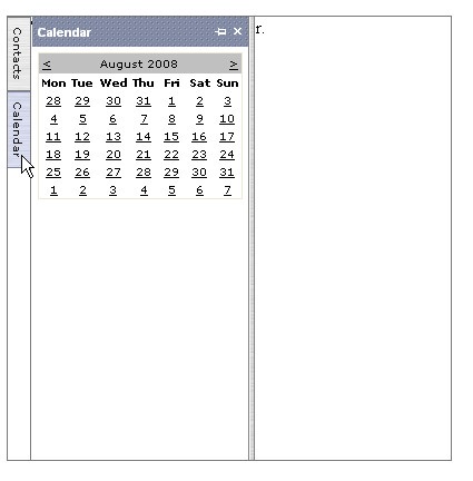 directly inside the pane of a splitter. RadSlidingZone implements a set of tabs