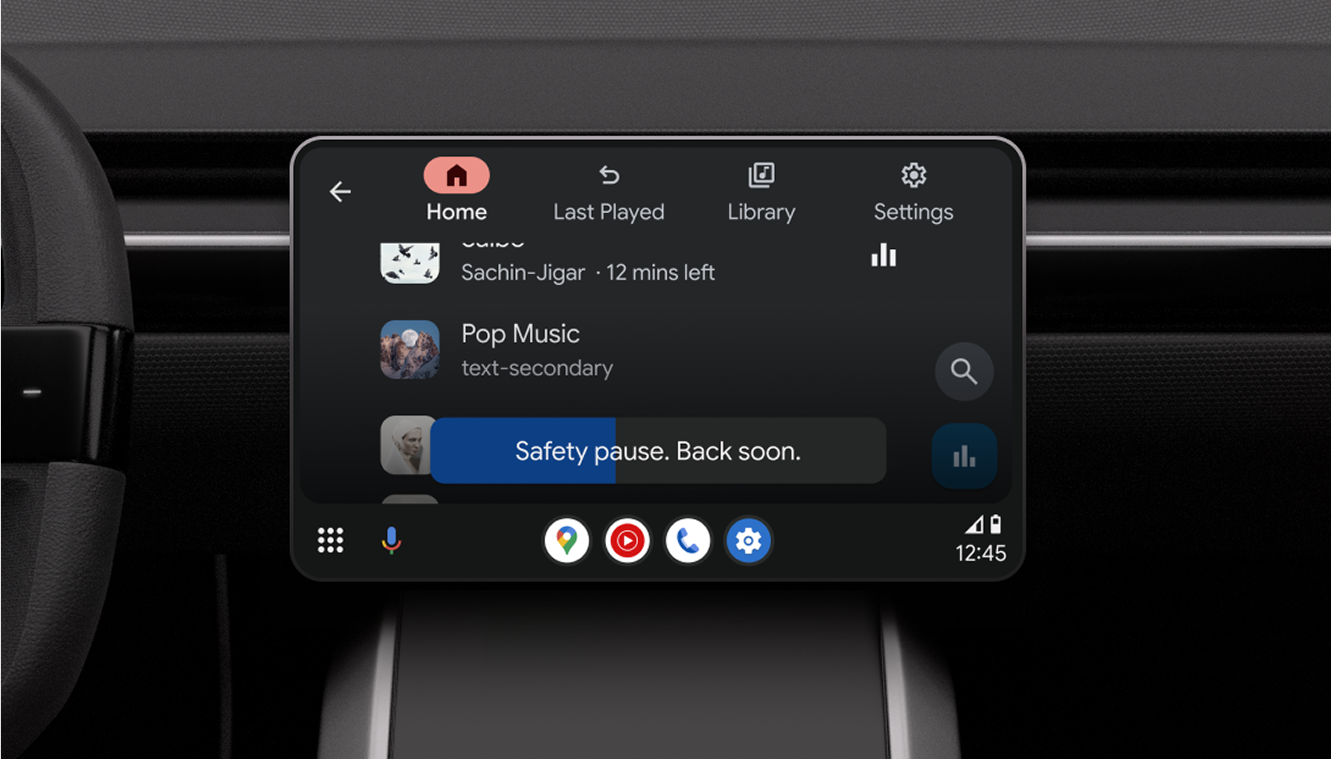 Experiences built with Android for Cars are backed by research, road tested, and in compliance with government and industry driver distraction guidelines.