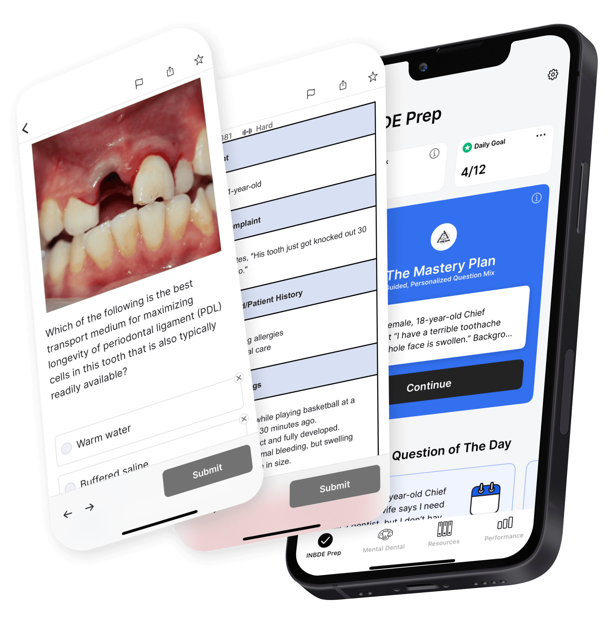 Access to over 4,000 expertly written practice questions and rationales, designed to help you confidently prep for the INBDE. It’s the most representative, up-to-date qbank in the market.