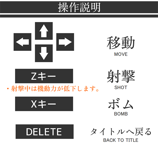 当時弾幕シューティングが流行っていたので、Flashでやれないかと作ったもの。 当時は処理速度に限界があったため、弾や敵をシンプルな四角にすることで速度を稼いでいる。あとは単純に描く技量はなかった。ちょうどよい!