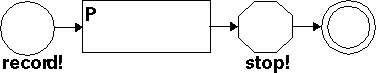 We also add three new kinds of circles: A `record' circle; a `stop' circle, and `replay' circle. When the penny enters a `record' circle, its tape recorder starts recording. When the penny enters a `stop' circle, it stops recording.