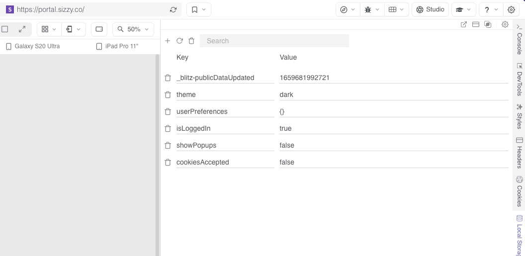 Sizzy also has a convenient Local Storage Editor that allows you to view and edit the values in Local Storage.