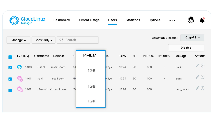 Stable servers reduce churn and allow you to increase density, and therefore magnify your profit. The CloudLinux OS stability features prevent resource spikes and make your servers rock-solid stable, even in the most stressful situations. CloudLinux OS protects your servers from attacks by virtualizing users’ file systems and prevent sensitive information disclosure. Our kernel-level technology prevents all known symbolic link attacks, which further enhances the security level of the servers. Secure the unsupported versions of PHP where, vulnerabilities, even if discovered, are not patched by the PHP.net community. Multiply the number of users on a more stable server with Cloudlinux OS and manage any resources limits for each customer. Troubleshooting performance problems with Detailed information on system bottlenecks, slow database queries, functions, or external calls.