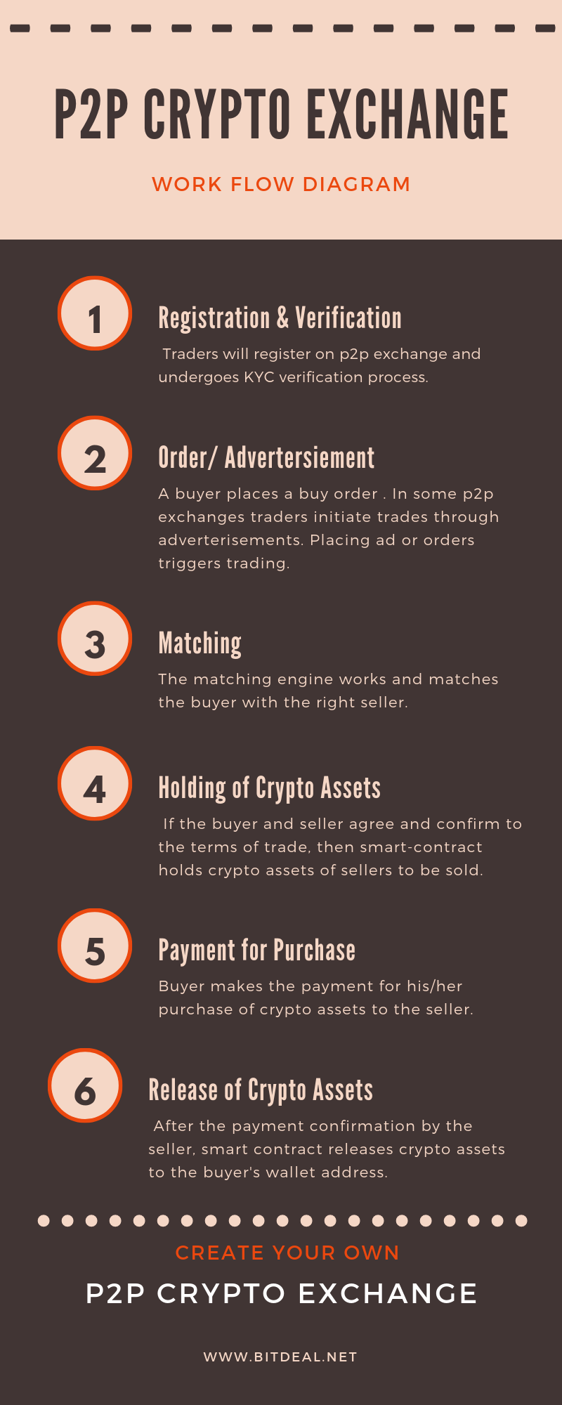 This is the overall workflow inside the p2p crypto exchange which performs trading with the elimination of middle man.