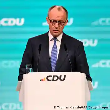 图为2月20日,德国总理梅尔茨在斯图亚特参加基民盟(CDU)的党内活动。