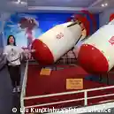 新华社2019年5月9日发布照片,显示2019年4月23日,在四川省绵阳市梓潼县,导游在两弹城(意为“核弹之城”)的一个展厅内讲解中国第一颗原子弹和氢弹的模型。