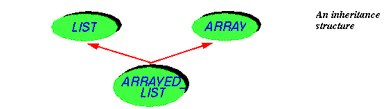 The inherit ... clause lists all the "parents" of the new class, which is said to be their "heir". (The "ancestors" of a class include the class itself, its parents, grandparents etc.; the reverse term is "descendant".) Declaring ARRAYED_LIST as shown ensures that all the features and properties of lists and arrays are applicable to arrayed lists as well. Since the class has more than one parent, this is a case of multiple inheritance.