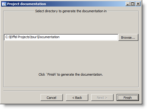 To continue the Guided Tour, you do not need to complete the generation now unless you want to. If you are happy to continue without generating the documentation at the moment then click Cancel on the last dialog.