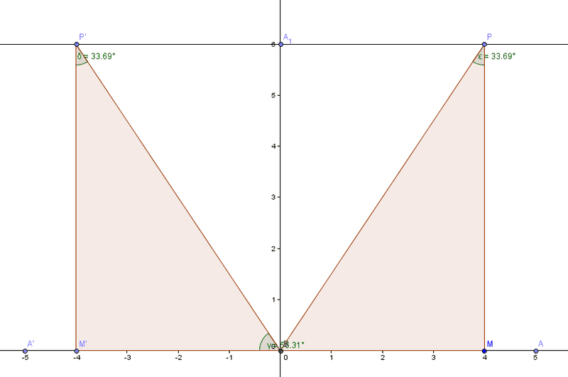 I know that angle MOP = angle M'P'O and both triangles formed are congruent, OM' = MP and M'P" = OM and OP' = OP.