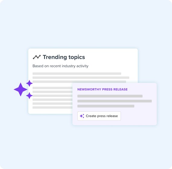 Quickly turn campaign ideas or trending stories into brand-aligned content. Use AI to draft press releases or create supporting assets like videos, blog posts and more, all tailored to your brand voice.