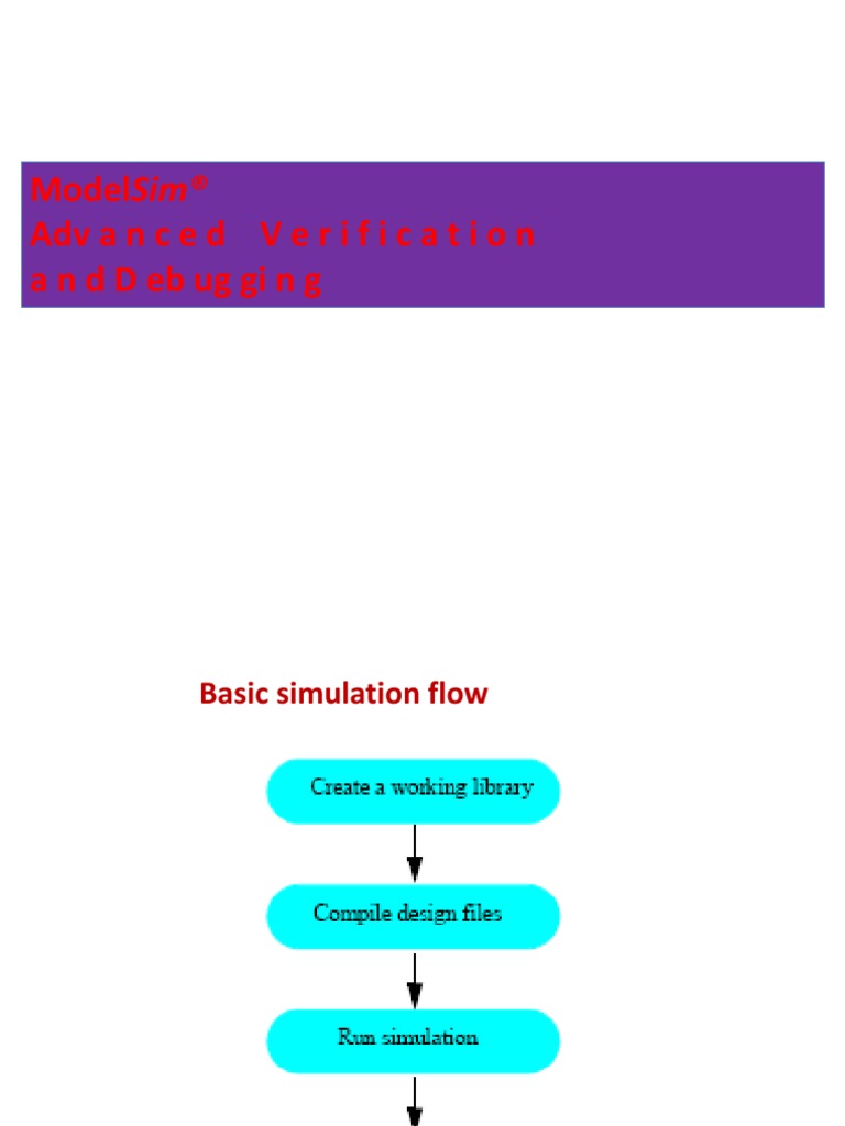 ModelSim Adv a n c e d V e r i f i c a t i o n a n d D eb ug gi n g