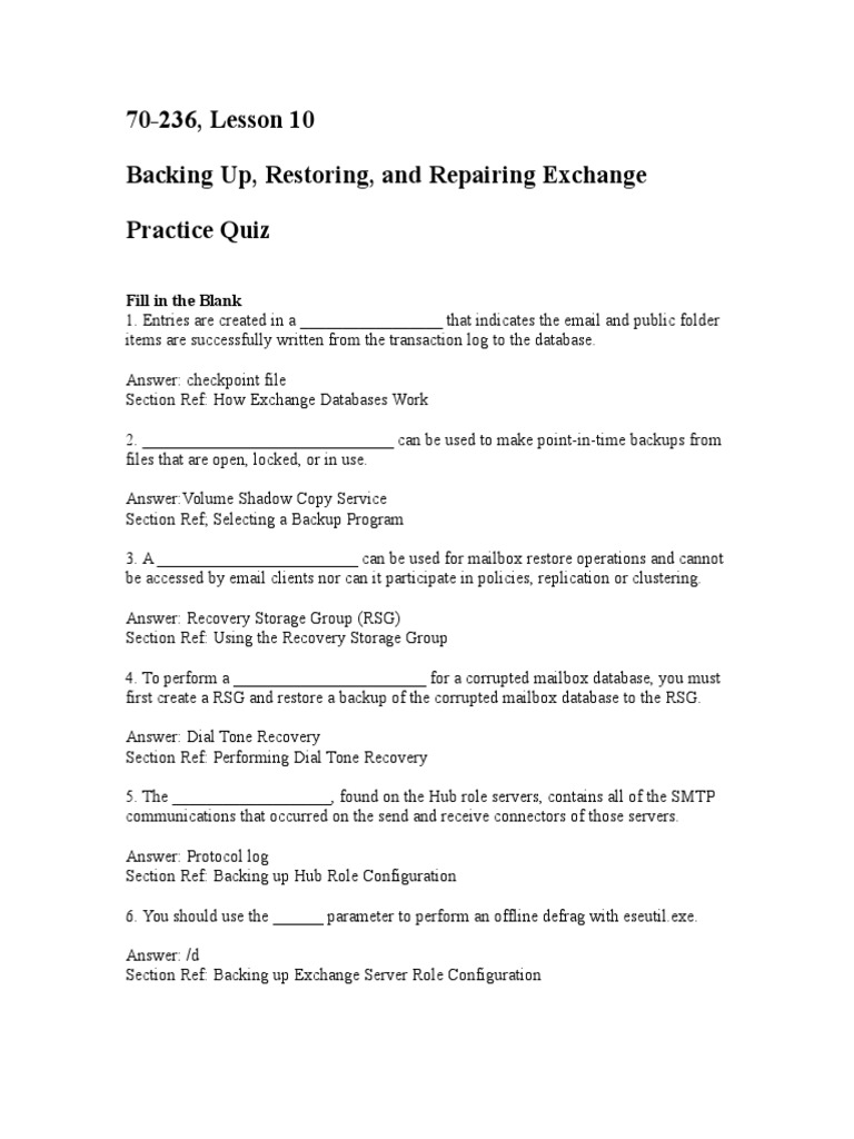 Section Ref: Backing up Exchange Server Role Configuration