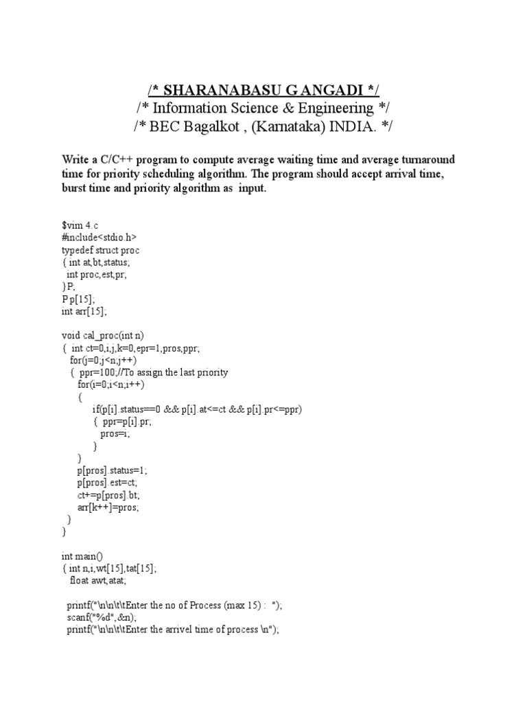 time for priority scheduling algorithm. The program should accept arrival time,