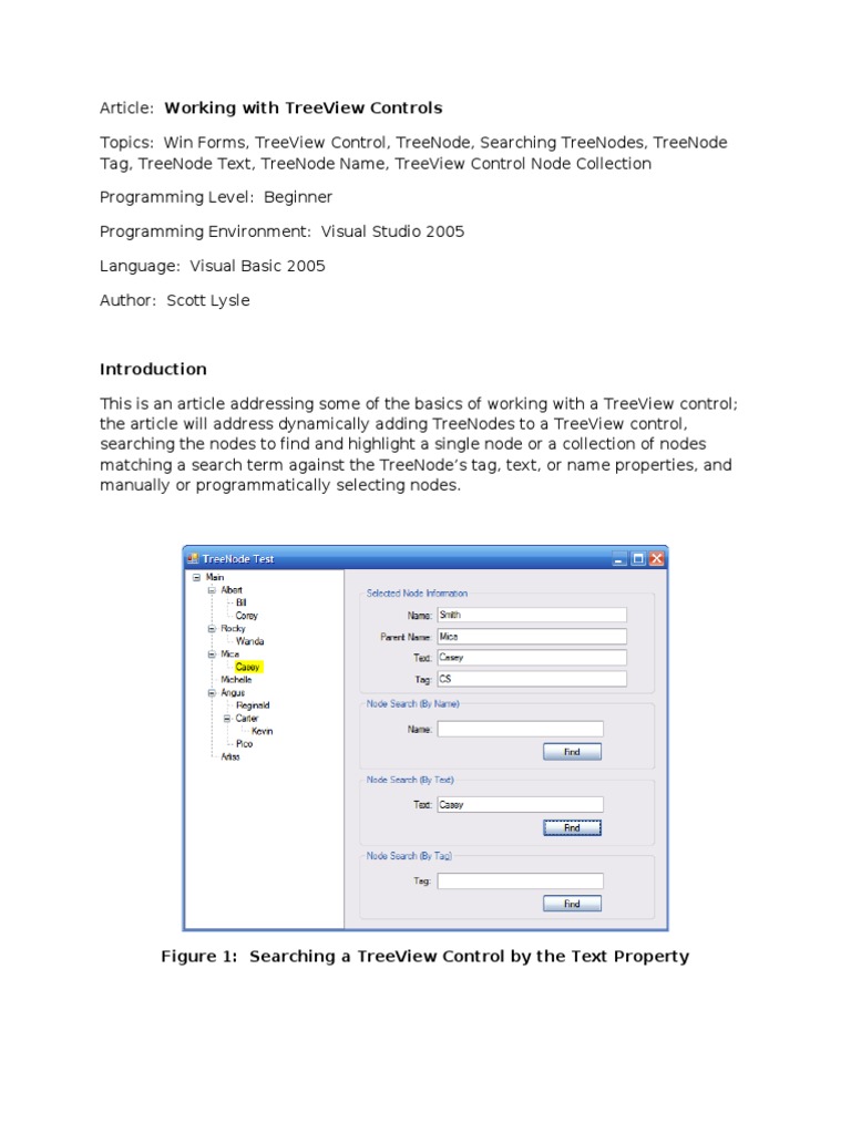 Article: Working with TreeView Controls Topics: Win Forms, TreeView Control, TreeNode, Searching TreeNodes, TreeNode Tag,