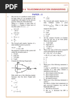 c) Make the processor wait during a power Shtd d) Interface slow peripherals to the Processor A 4-bit synchronous Counter uses flip4lops with propagaj delay time of 25 ns each. The maximum Possible time required for change of state will be a) 25 ns .b) 50 ns . C) 75 ns d) 100 ns An electromagn Wave incident on a perfect Conductor is: a) Entirely reflected b) Fully tranSmjffj C) Partially transmjftj d) None of these Maximum coding gain in a) Block Codes b) Codes c) Turbo Codes d) RS Codes Noise figure of an amplifier depends on a) Bandwidth b) Output power c) Power input d) None of the above BCH code belongs to a) Block Codes b) Codes c) Turbo Codes d) None of the above When a carrier is phase modulated, with an integrated modulating signal, the resultant is a) Phase modulated signal b) Frequency modulated signal C) Amplitude modulated signal d) QPSK modulated signal A satellite orbiting in 600 km orbit transmits 5 GHz frequency. The Doppler shift observed at the ground station, when the satellite is over head of the station is d) None of the a) Zero b) Maximum c) Infinity A communication channel disturbed by additive white Gaussian noise has a bandwidth of 4kHz and SNR of 15. The highest transmission rate that such a channel can support (in kbits/sec) is a)16 b)1.6 c)3.2 d)60 An inductor supplied with 50 V ac with a frequency of 10 kHz passes a current of 7.96 mA. The value ofinductor is a) lmH b) lOmH c) lOOmH d) IH In a capacitor, the electric charge is stored in a) Dielectric b) Metal plates c) Dielectric as well as metal plates d) Neither dielectric nor metal plates
