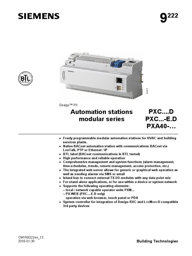 Siemens PXC....D PXC...-E.D + PXA40-… – Automation stations modular series CM1N9222en_12