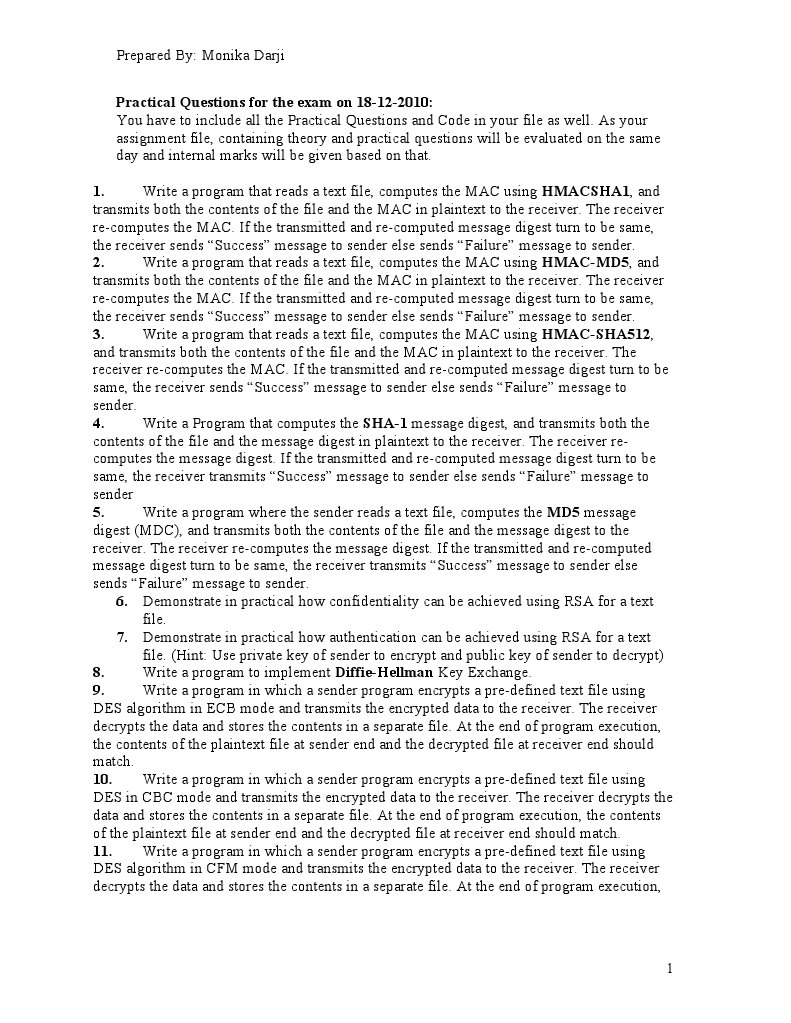 1. Write a program that reads a text file, computes the MAC using HMACSHA1, and