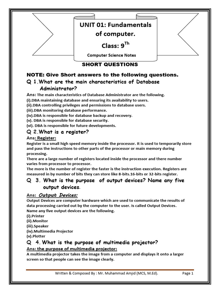 Written & Composed By : Mr. Muhammad Amjid (MCS, M.Ed). Page 1