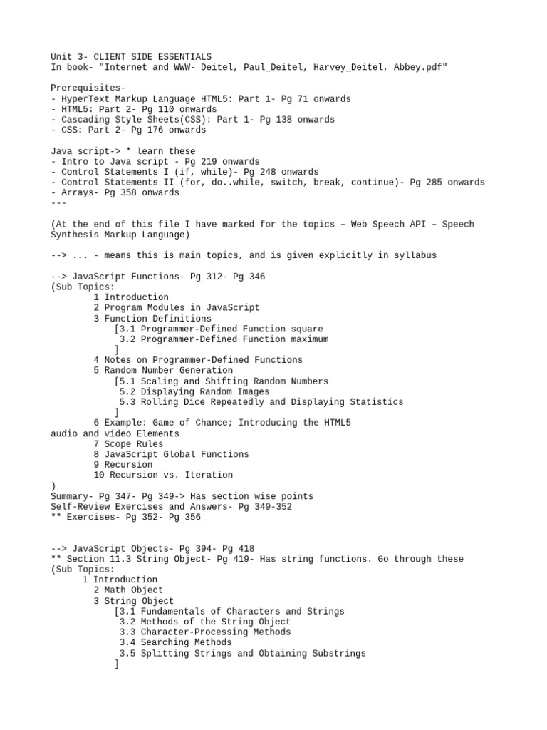 - HyperText Markup Language HTML5: Part 1- Pg 71 onwards