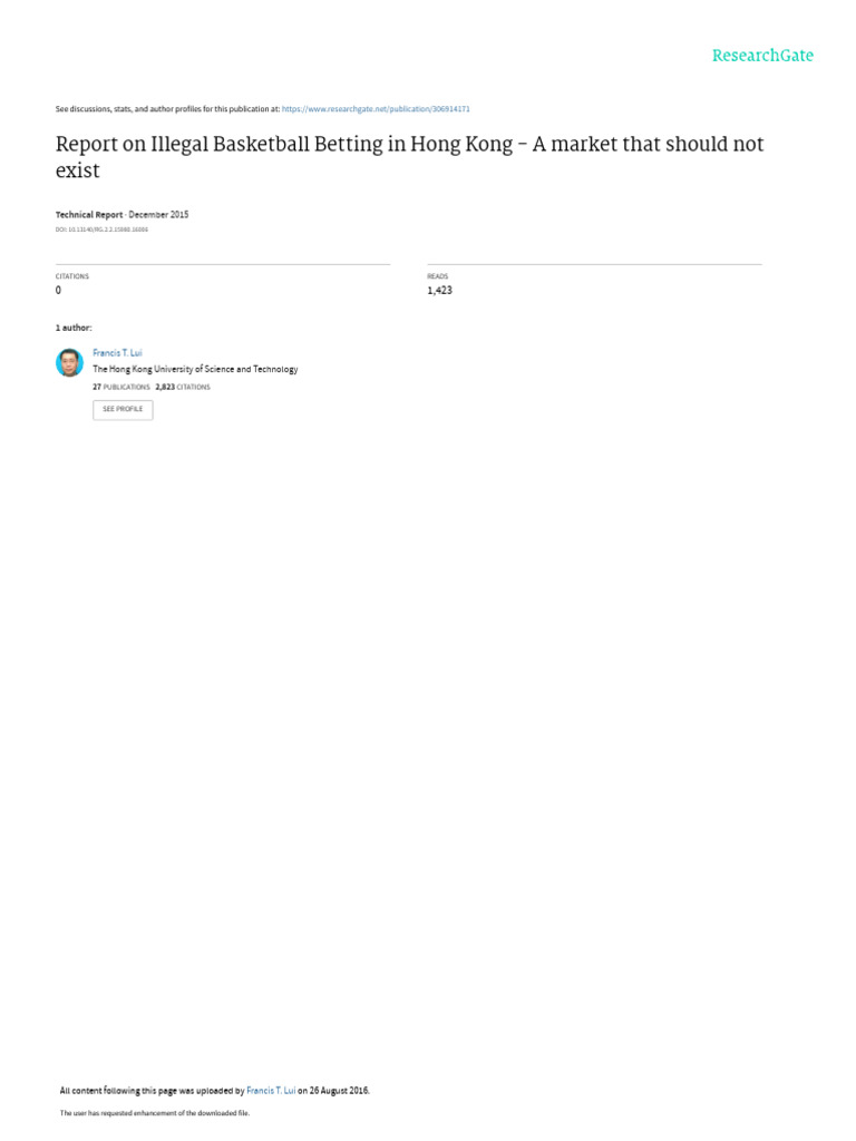 Report on Illegal Basketball Betting in Hong Kong - A market that should not