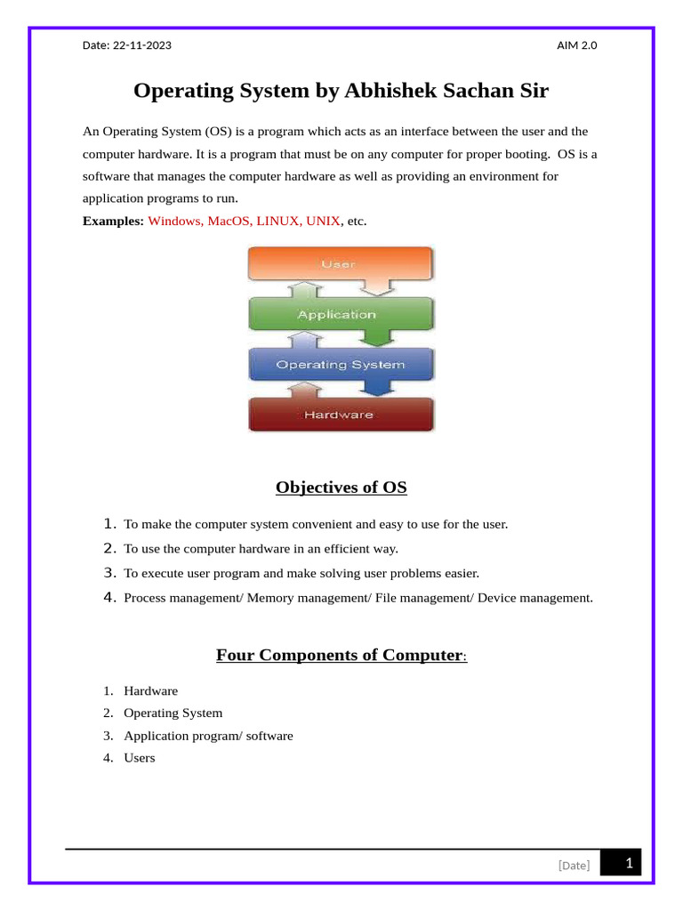An Operating System (OS) is a program which acts as an interface between the user and the