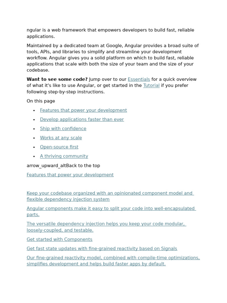 ngular is a web framework that empowers developers to build fast, reliable