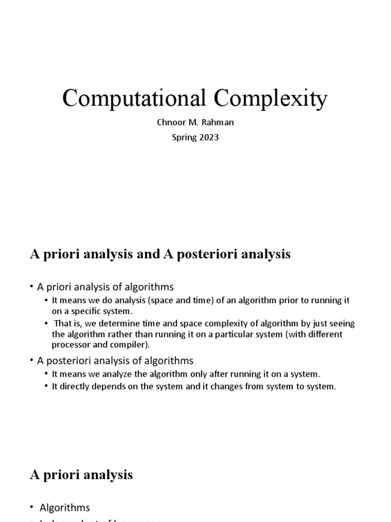 • A priori analysis of algorithms