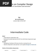 The document discusses three-address code, highlighting its compactness and the absence of destructive operators, which allows for efficient name and value reuse in compilers. It details syntax-directed translation schemes for programming constructs, particularly focusing on assignment statements and the use of a symbol table for identifiers and temporaries. Additionally, it describes the representation of three-address codes as quadruples and outlines various statement types including assignment, jumps, and indexed assignments.