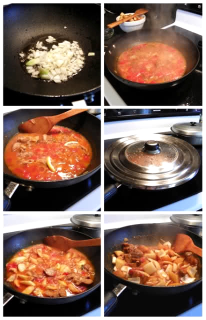 二、放排骨、番茄粒、番茄沙司(Tomato Sauce)、水、糖、料酒,水没过排骨;(先不放土豆,是为了不让土豆煮得过熟变成粉糊)
