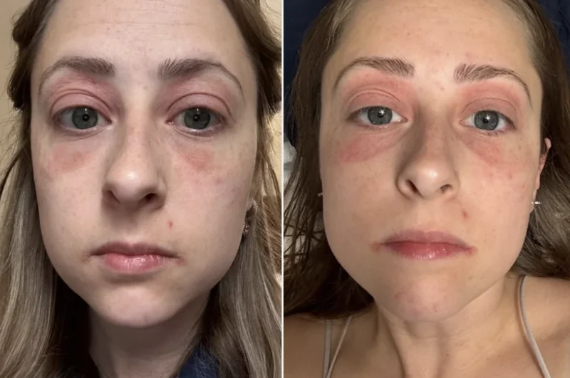 起初只是轻微不适——疲惫、眼睛发痒、鼻塞。她并未在意,以为是季节性过敏。但随着时间推移,症状明显加重。她在自拍视频中发现,自己的面容越来越憔悴,眼睛周围红肿发炎,甚至出现出血情况。